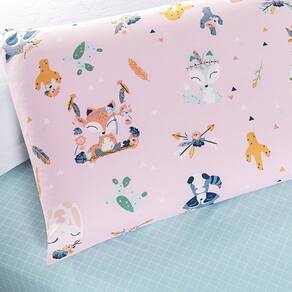 Jogo de Cama Lençol Lutti Solteiro Infantil 200 Fios Estampado 2 Peças Raposa Foxy Rosa