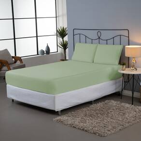Jogo Lençol Queen 3 Peças Percal 140 Fios Liso Algodão - Verde