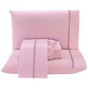Jogo Lençol Queen Blush Guipir 4pç 100% Poliéster - Malva