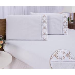 JOGO DE LENÇOL CASAL QUEEN BORDADO 3 PEÇAS