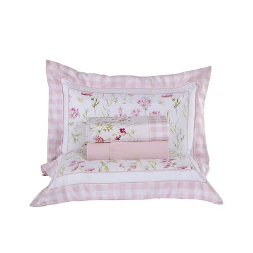 Conjunto ideal para cama Queen, composto por lençol de baixo com elástico, lençol de cima e duas fronhas, garantindo ajuste perfeito e harmonia na cama.