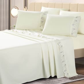 O Jogo de lençol para cama Queen com 04 peças confeccionado em tecido Percal 300 fios, detalhes bordado na fronha e no lençol de cima. Possui alto padrão de qualidade, proporciona conforto e sofisticação.
