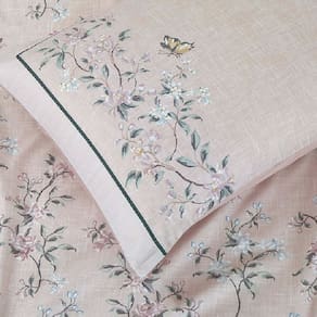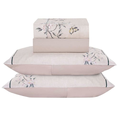 O Jogo de lençol para cama Queen com 04 peças confeccionado em tecido Percal 300 fios, estampa floral na fronha e no lençol de cima. Possui alto padrão de qualidade, proporciona conforto e sofisticação.