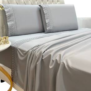 Jogo Lençol Queen Grace Bordado 4pç 100% Poliéster - Cinza