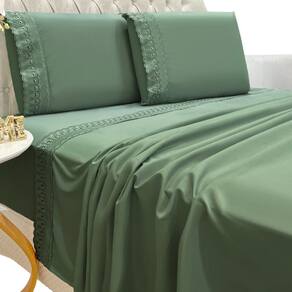 Jogo Lençol Queen Grace Bordado 4pç 100% Poliéster - Esmeral - Verde