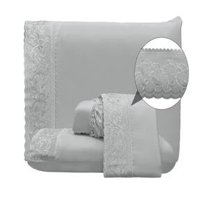 O Jogo de lençol para cama Queen com 04 peças confeccionado em tecido Percal 300 fios, detalhes em bordado inglês na fronha e no lençol de cima. Possui alto padrão de qualidade, proporciona conforto e sofisticação.