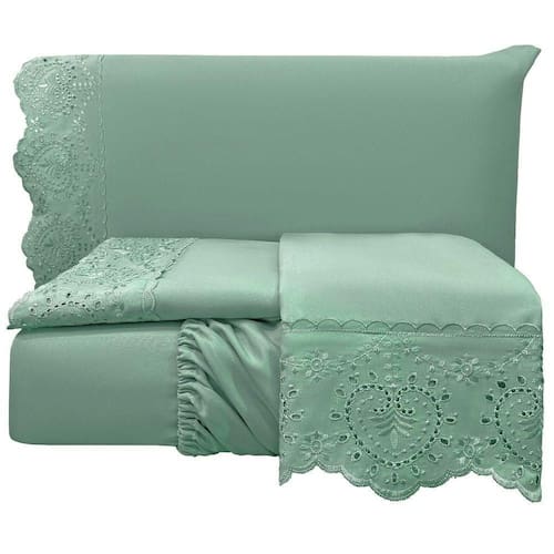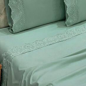 O Jogo de lençol para cama Queen com 04 peças confeccionado em tecido Percal 300 fios, detalhes em bordado inglês na fronha e no lençol de cima. Possui alto padrão de qualidade, proporciona conforto e sofisticação.