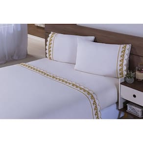 Produzido com materiais resistentes e de alta qualidade, esse jogo de lençol é confeccionado em 100% algodão 200 fios, proporcionando um toque suave e agradável à pele. Sua cor dourada traz elegância e sofisticação para o ambiente.