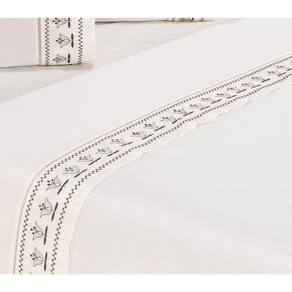 Jogo lençol Tulipa quarto casal king bordado 4 peças 2fronha - Palha
