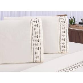 Jogo lençol Tulipa quarto casal Queen bordado 4 peças 2fronha - Palha