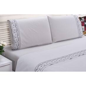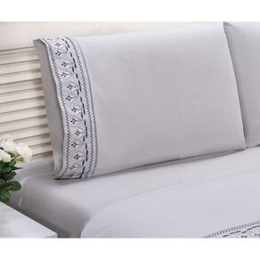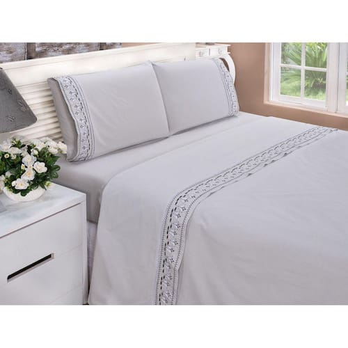 Jogo lençol Tulipa quarto casal Queen bordado 4 peças 2fronha - Cinza