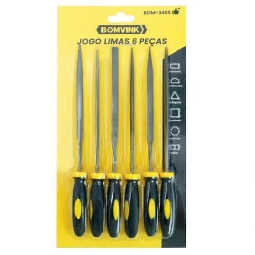 Jogo lima 6pçs bom-3405 O jogo de limas agulha com cabo 6 peças bom-3405 da bomvink foi especialmente desenvolvido para garantir durabilidade e precisão em variadas aplicações. Feito com aço de alta qualidade e resistência ao desgaste, é o companheiro ideal para trabalhos detalhados. Características: Alta durabilidade: fabricadas em aço forjado, essas limas oferecem resistência superior contra desgastes, garantindo uma vida útil prolongada. Tamanho ideal: com 14cm de comprimento, essas ferramentas são perfeitas para operar em espaços limitados, tornando-se essenciais em sua caixa de ferramentas. Variabilidade: o conjunto inclui 6 tipos diferentes de limas, o que permite sua aplicação em diversos cenários, desde trabalhos artísticos até ajustes finos em metal Conforto no uso: cada lima possui um cabo revestido com borracha, projetado para proporcionar conforto e reduzir a fadiga durante o uso prolongado. Eficiência aprimorada: o grão uniforme e o padrão claro dos dentes das limas garantem uma afiação excepcional, melhorando significativamente a sua eficiência de trabalho. : 90 dias. Marca: Não Informado