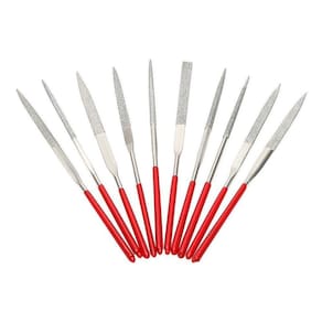 O Kit Jogo Lima Agulha Diamantada Relojoeiro Ourives 10 Peças é a ferramenta ideal para profissionais que trabalham com rebarbas, joalheria, ótica e muito mais. Composto por 10 limas agulha de alta qualidade, este kit foi projetado para ser durável e fácil de usar.