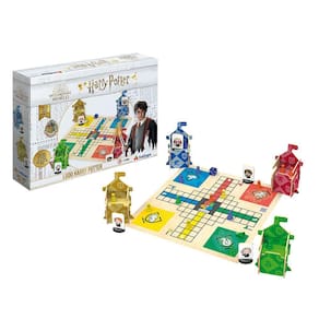 Pode ser jogado por 2,3 ou 4 jogadores e é composto por 01 tabuleiro quadrado, 16 peões coloridos em plástico e 04 torres de quadribol em madeira reflorestada para suporte dos peões. Indicado para crianças a partir dos 6 anos.