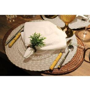 Jogo Lugar Americano Redondo Bege 38 cm Decoração Mesa Posta Descanso Prato Feito à Mão - Lugar Americano de Mesa - Redondo - Quantidade: 1 Unidade. - Cor: Bege. - Tamanho: 38cm de diâmetro. A marca Top Flex Top Rio Comercial é reconhecida pela excelência na qualidade e praticidade dos produtos importados e ofertados. O lugar americano TFP6241 é fabricado em PVC, feito a mão com trama entrelaçada, proporcionando design elegante e diferenciado. Produto versátil que pode ser em todos os modelos de mesas, em diferentes ocasiões e em todas as refeições. O que vale é a criatividade Prático e higiênico protege a mesa, evitando manchas e riscos, além de deixar o ambiente mais charmoso e sofisticado. Um ótimo artigo decoração tanto para casa como para restaurantes e outros estabelecimentos. Fácil de limpar e seca rapidamente sem ocupar grandes espaços. Chega de esfregar toalhas manchadas e não ter lugar para estendê-las - : 03 meses para defeito de fabricação. - Indicação de Uso: Mesas e bandejas. - Conteúdo da embalagem: 1 Lugar Americano para mesa ou bandeja. - Composição do produto: 80% PVC e 20% de estabilizantes e outros aditivos. - Instruções para instalação: Fácil, desdobre o produto e estenda sobre a mesa colocando pratos, talheres e guardanapos sobre ele. - Produto . Dúvidas frequentes: - O que é um lugar americano R. Pequena toalha fabricada em materiais diversos que comportam pratos, talheres e copos não recobrindo a mesa por inteiro. - Qual a diferença entre lugar americano e jogo americano R.O jogo americano é a junção do lugar americano com o guardanapo de tecido. - Quais cuidados devo ter para a conservação desse artigo de decoração R. Não utilizar alvejante a base de cloro na lavagem da peça. Lavar a temperatura máxima de 40 graus célsius. - Como devo limpar meu lugar americano R. Na maioria das vezes pano umedecido com água. Eventualmente lavar com água e sabão neutro. Deixar secar à sombra. - Temos também diversas persianas e outros artigos de decoração em . Consulte-nos Marca: Não Informado Ean: 7891409601119