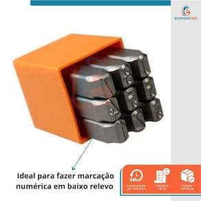 CARACTERÍSTICAS TÉCNICAS: Material: Aço temperado Quantidade de punções: 9 Tipo de caractere: Numéricos de 0 a 8 Acompanha estojo plástico protetor Marca: Starfer Marca: Não Informado Ean: 7891638037055