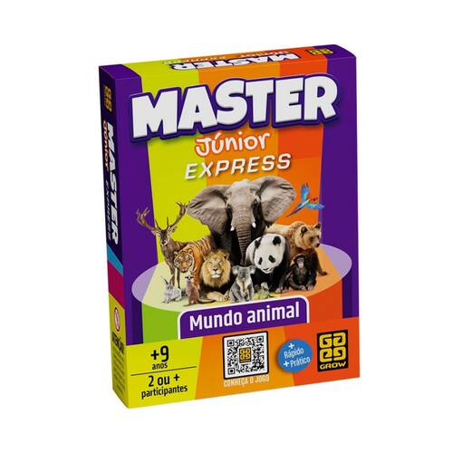 Master Junior Express Mundo Animal traz uma nova forma de se divertir com esse clássico da GROW! São 100 cartas com 500 perguntas de múltipla escolha e diferentes níveis de dificuldade, para que os participantes possam mostrar todo seu conhecimento sobre o mundo animal e ao mesmo tempo conhecer divertidas curiosidades do tema.