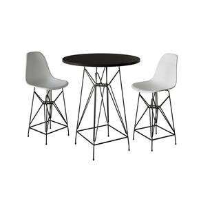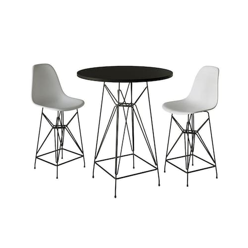 Jogo Mesa Bistrô Eames Preta 60cm 2 Banquetas Branca Base Ferro PretoO Jogo de Mesa e Banqueta Bistrô Eames possui um design moderno cheio de charme, fabricado com material de alta qualidade, proporcionando o melhor conforto e sem perder o estilo. A banqueta possui uma curvatura ergonômica que se encaixa perfeitamente ao corpo, ficando ainda mais completo com a mesa.Tipo: ConjuntoModelo: Eames BistrôCor Tampo da Mesa: PretoCor Assento da Banqueta: BrancoCor da Base: PretoCARACTERÍSTICASBase: FerroTampo da Mesa: MDFAssento: Plástico polipropilenoDIMENSÕES DA BANQUETAAltura: 101,5cmAltura assento até o chão: 70,5cmLargura: 40cmComprimento: 40cmDIMENSÕES DA MESAAltura: 100cmDiâmetro: 60cmLargura base: 40cmComprimento base: 40cmIMAGENS MERAMENTE ILUSTRATIVAS, PODENDO HAVER UMA PEQUENA VARIAÇÃO NA COR DEPENDENDO DE CADA TELA OU MONITOR.Jogo Mesa Bistrà Eames Preta 60cm 2 Banquetas Branca Base Ferro Preto