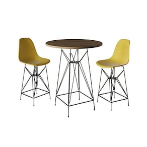 Jogo Mesa Bistrô Eames Tampo Amêndoa 60cm 2 Banquetas Amarela Base Ferro PretoO Jogo de Mesa e Banqueta Bistrô Eames possui um design moderno cheio de charme, fabricado com material de alta qualidade, proporcionando o melhor conforto e sem perder o estilo. A banqueta possui uma curvatura ergonômica que se encaixa perfeitamente ao corpo, ficando ainda mais completo com a mesa.Tipo: ConjuntoModelo: Eames BistrôCor Tampo da Mesa: AmêndoaCor Assento da Banqueta: AmareloCor da Base: PretoCARACTERÍSTICASBase: FerroTampo da Mesa: MDFAssento: Plástico polipropilenoDIMENSÕES DA BANQUETAAltura: 101,5cmAltura assento até o chão: 70,5cmLargura: 40cmComprimento: 40cmDIMENSÕES DA MESAAltura: 100cmDiâmetro: 60cmLargura base: 40cmComprimento base: 40cmIMAGENS MERAMENTE ILUSTRATIVAS, PODENDO HAVER UMA PEQUENA VARIAÇÃO NA COR DEPENDENDO DE CADA TELA OU MONITOR.Jogo Mesa Bistrà Eames Tampo AmÃndoa 60cm 2 Banquetas Amarela Base Ferro Preto