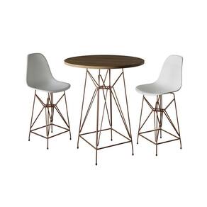 Jogo Mesa Bistrô Eames Tampo Amêndoa 60cm 2 Banquetas Branca Base Ferro CobreO Jogo de Mesa e Banqueta Bistrô Eames possui um design moderno cheio de charme, fabricado com material de alta qualidade, proporcionando o melhor conforto e sem perder o estilo. A banqueta possui uma curvatura ergonômica que se encaixa perfeitamente ao corpo, ficando ainda mais completo com a mesa.Tipo: ConjuntoModelo: Eames BistrôCor Tampo da Mesa: AmêndoaCor Assento da Banqueta: BrancoCor da Base: CobreCARACTERÍSTICASBase: FerroTampo da Mesa: MDFAssento: Plástico polipropilenoDIMENSÕES DA BANQUETAAltura: 101,5cmAltura assento até o chão: 70,5cmLargura: 40cmComprimento: 40cmDIMENSÕES DA MESAAltura: 100cmDiâmetro: 60cmLargura base: 40cmComprimento base: 40cmIMAGENS MERAMENTE ILUSTRATIVAS, PODENDO HAVER UMA PEQUENA VARIAÇÃO NA COR DEPENDENDO DE CADA TELA OU MONITOR.Jogo Mesa Bistrà Eames Tampo AmÃndoa 60cm 2 Banquetas Branca Base Ferro Cobre