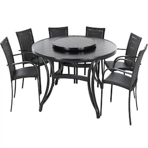 Jogo Mesa Giratória 1,50m Com 6 Cadeiras Em Alumínio Trama Pedra Ferro