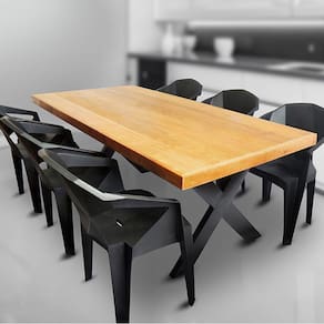 MODELO: TEXAS Madeira Maciça Formato: Retangular Material do Tampo: Madeira Nobre e Maciça Material dos Assentos: Madeira Nobre e Maciça Material dos Pés: Ferro Acabamento dos Pés: Pintura Epóxi Eletrostática Nivelamento dos Pés: Sim