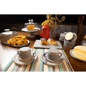 Material Autêntico: Feito com a mais fina pedra sabão, conhecida por sua durabilidade, capacidade de retenção de calor e propriedades naturais que não alteram os Único: Cada peça é esculpida e polida à mão, garantindo um produto único para a sua casa ou escritório. A beleza natural da pedra sabão, com suas variações de cor e textura, significa que nenhum aparelho é exatamente igual ao ácil de Limpar: Apesar de sua aparência sofisticada, a limpeza é simples e prática, assegurando que o sabor do seu café permaneça puro e você um aficionado por café ou alguém que aprecia a beleza e a funcionalidade nas peças de cozinha, este aparelho de café em pedra sabão é a escolha perfeita. Ele também atua como uma peça de decoração atemporal que certamente atrairá elogios de seus kit contém:01 Boleira / Queijeira de pedra com tampa de vidro;01 Manteigueira francesa de pedra 200g;04 Pratos 18 cm de diâmetro;04 Xícaras de chá com pires;O que você achou?Caso tenha ficado alguma dúvida pode nos contatar, teremos o maior prazer em atender.Explore as nossas outras opções de produtos, temos certeza que encontrará outros produtos de seu interesse! :)Visite nossas páginas e nos siga nas redes A PANELA DE PEDRA