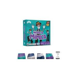 O jogo inclui 180 cartas temáticas de 56mm x 87mm com sugestões para mímicas criativas e uma ampulheta de 6,7 cm x 3,5 cm para cronometrar o tempo das rodadas.