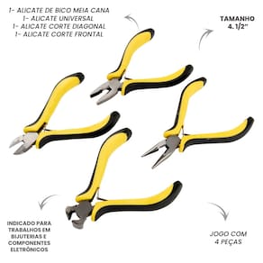 Nome: Jogo Mini Alicates Eletrônica 4 Peças 4.1/2" Eda