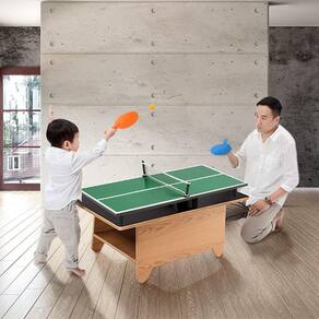 Feita com materiais de alta qualidade, superfície em madeira resistente e rede, raquetes e bolinha inclusa, garante um jogo suave e autêntico.
