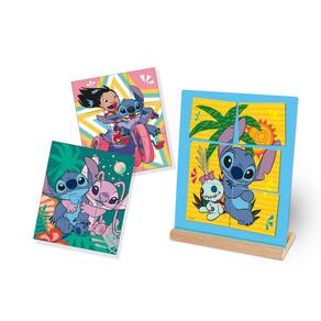 O jogo inclui uma placa de metal com 4 cenas diferentes do Stitch para a criança montar.