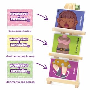 Se um jogo já é legal, imagina 3 jogos em 1, que estimulam habilidades como expressão oral e corporal, imaginação e memória visual.