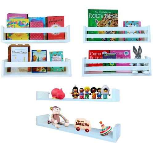 Jogo De Nichos Infantis Porta Livros e Brinquedos Prateleira Quarto Infantil 6un 55cm Prateleiras enviadas montadas para você, de acabamento perfeito. Qualidade comprovada por nossos clientes Fabricação da Arte Cedro decor Pronta para enviar O que vem: 2 Prateleiras porta livros, brinquedos e multiuso. 2 ripas frontais 2 prateleiras porta livros, brinquedos e multiuso. 1 ripa frontal 2 prateleiras modelo U decorativas de parede. Kit instalação dos produtos. Com este Jogo de Nichos você vai decorar e organizar todos os ambientes da sua casa. Pode ser instalado em várias posições de acordo com sua necessidade. Produto perfeito para qualquer área. No quarto pode ser Utilizado como porta livros, pelúcias, brinquedos, enfeites. No banheiro como porta xampu, cosméticos, papel higiênico. Pode ser também fixado invertido para funcionar como cabideiro ou porta toalha. Na cozinha é utilizado como porta temperos, condimentos, potes, etc. Organizador de Sala de leitura, expositor de cosméticos em salão de beleza. Estante muito versátil, com uma infinidade de possibilidades para toda sua casa. Fácil instalação, bastando fixar na parede. Suporta até 8 kilos cada. Material 100% MDF 15 mm. Acabamento real do mdf, superior á pintura em qualidade e durabilidade Produzido com fita de borda em PVC, incomparável ás de papel utilizadas no mercado MEDIDAS 55 CM comprimento. 12 CM altura. 10 CM largura. Marca: Não Informado
