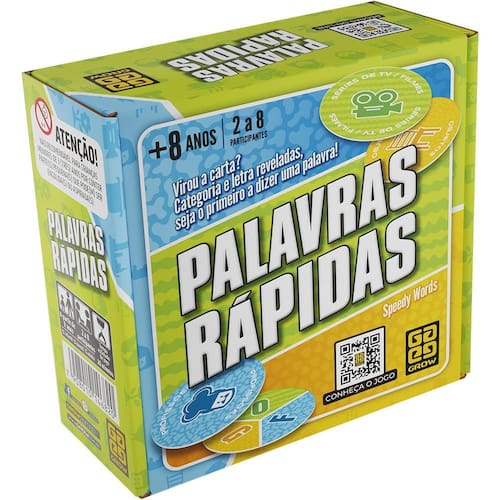 Recomendado para crianças a partir de 8 anos, Palavras Rápidas pode ser jogado por até 8 participantes, com partidas de aproximadamente 20 minutos. Ideal para animar encontros, viagens ou tardes em casa. Um jogo que estimula o raciocínio rápido e garante muita diversão para todas as idades.