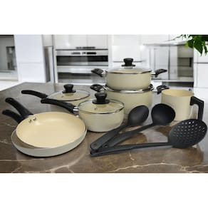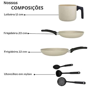 Fabricado com materiais de alta qualidade, como cerâmica, alumínio, baquelite e vidro temperado, este jogo de panelas garante durabilidade e resistência. O revestimento antiaderente facilita a limpeza e evita que os alimentos grudem, proporcionando uma experiência de cozimento mais agradável e saudável.