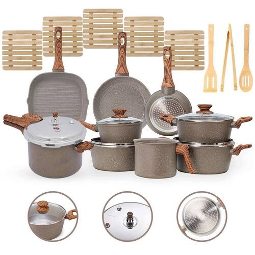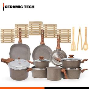 Distribuído por feheros shop Jogo de panelas premium 17 peças 4mm indução revestimento cerâmico antiaderente Atenção As panelas com revestimento cerâmico possuem propriedades antiaderentes, o que significa que ajudam a evitar que os alimentos grudem durante o cozimento. No entanto, elas não são 100% antiaderentes. - certificação inmetro nível a - evite que a chama do fogão atinja as laterais das panelas - leia atentamente a descrição e siga as recomendações do fabricante Informações do produto - versatilidade incrível, projetado para funcionar em todas as fontes de calor, incluindo indução, para você cozinhar com confiança e alto desempenho - cozinha saudável, com cerâmica livre de pfoa e ptfe, permitindo usar menos óleo e mantendo o sabor natural dos alimentos - economia de tempo e energia, aquecimento rápido e distribuição de calor uniforme, reduzindo o tempo de cozimento e o consumo de energia - conjunto cozinha completa, agora com 17 peças essenciais para preparar de receitas simples às mais elaboradas Especificações técnicas do produto - pode ser em todos os tipos de fogões existentes no mercado, a gás, elétricos, vitrocerâmicos e de indução - revestimento cerâmico em 3 camadas, com 4 mm de espessura - cabo em baquelite com revestimento soft touch, super macio ao toque, confortável de segurar e que ajuda a evitar queimaduras - revestimento cerâmico antiaderente, não gruda nos alimentos e permite usar menos óleo - composição de 3 camadas, sendo 2 de revestimento cerâmico e 1 camada especial resistente a alta temperatura Ficha técnica do produto: - caçarola 18 m : 18 cm x 8,5 cm - 1700 ml - caçarola 22 g : 22 cm x 10 cm - 3200 ml - panela 16 p : 16 cm x 8,5 cm - 1300 ml - panela 18 m : 18 cm x 8,5 cm - 1700 ml - frigideira 16 p : 16 cm x 4 cm - 600 ml - frigideira 22 m : 22 cm x 4,7 cm - 1450 ml - grill 24 g : 24 cm x 4 cm - 1500 ml - leiteira 14: 14 cm x 12 cm - 1800 ml - panela 4,2 l: 20 cm x 14,5 cm - 4200 ml - espátula vazada em bambu: 30 x 6 x 1 cm - colher vazada em bambu: 30 x 6 x 1 cm - descansos de panela quadrados em bambu: 17 x 17 cm - pinça pegador em bambu: 36 x 8 x 2 cm Antes do primeiro uso cura do produto - lave com esponja macia e detergente líquido - seque bem, com pano seco - aplique fina camada de óleo vegetal na parte interna - leve ao fogo baixo por 2 minutos - deixe esfriar, lave novamente e seque antes de usar Após o uso - evite choques térmicos, e aguarde esfriar antes de lavar - lave manualmente, com água morna, sabão neutro e esponja macia - para remover resíduos, deixe de molho em água por alguns minutos - não use produtos ou esponjas abrasivas - não é indicado o uso em lava louças, para preservar o revestimento cerâmico Itens inclusos no pacote - 01 caçarola 18 cm revestimento cerâmico 1,7 l tampa de vidro temperado - 01 caçarola 22 cm revestimento cerâmico 3,2 l tampa de vidro temperado - 01 panela 16 cm revestimento cerâmico 1,3 l tampa de vidro temperado - 01 panela 18 cm revestimento cerâmico 1,7 l tampa de vidro temperado - 01 frigideira 16 cm revestimento cerâmico 0,6 l - 01 frigideira 22 cm revestimento cerâmico 1,45 l - 01 grill 24 cm revestimento cerâmico 1,5 l - 01 leiteira 14 cm revestimento cerâmico 1,8 l - 01 panela revestimento cerâmico 4,2 l - 01 espátula vazada bambu - 01 colher vazada bambu - 01 pinça pegador de carnes bambu - 05 descansos de panela quadrados bambu Todas as fotos são reais dos produtos. Qualquer dúvida, estamos à disposição Dúvidas frequentes 01 - os produtos são novos Possuem R: sim, são novos e contam com 3 meses de do fabricante 03 - como faço para acompanhar o envio R: após a compra, você receberá um código de rastreamento para acompanhar todo o processo de entrega