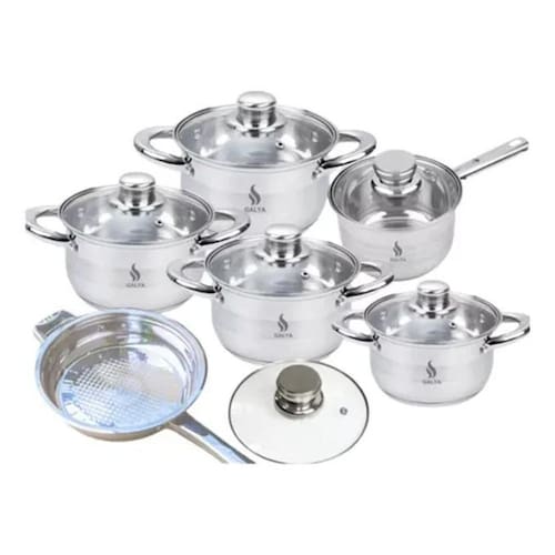 Jogo panela galya 12 peças O jogo de palemas galya francesa é uma opção elegante e durável para sua cozinha. Composto por 12 peças de aço inoxidável de alta qualidade, combinando com cerâmica de performace que assegura um cozimento uniforme e eficiente. As panelas possuem tampas de vidro que permitem visualizar o processo de cozimento sem perder o calor. Além de serem extremamente versáteis, essas paneas são compatíveis com todos os tipos de fogões, incluindo o elétrico, a gás, indução e cerâmica. Ooferecendo flexibilidade na sua cozinha. Esse conjunto também é adequado para uso em lava-louças, facilitando a limpeza e manutenção. Ideal para quem busca uma cozinha funcional e sofisticada, o jogo de panelas galya combina resistência, beleza e praticidade. Conteúdo da embalagem: Panela de 24x14,5cm 6,5l Panela de 20x12,5cm 3,9l Panela de 18x11,5cm 2,9l Panela de 16x10,5cm 2,1l Panela de 16x10,5cm 2,1l com cabo Frigideira de 24x7,5cm 3,3l com cabo : 90 dias.