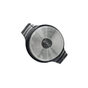 Especificações Técnicas 16 a 24cm: Revestimento Externo: Alumínio Fundido Preto Craqueado. Revestimento Interno: Antiaderente em Cerâmica cor Cinza. Alça Alumínio Tampa de Vidro.