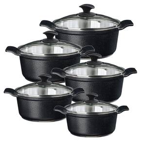 Jogo Panela Preto Craqueado Alumínio Usinado Javali AA 16a24 A linha de caçarolas usinadas se destacam pelo brilho interno das peças, resultante do processo da fabricação de alta qualidade. As caçarolas usinadas são fabricadas em alumínio fundido. Esse material é muito popular por oferecer um excelente custo benefício e por permitir um design versátil e prático, são muito procuradas pois possuem um preço competitivo e tem maior durabilidade. Faça seus alimentos mais saudáveis e saborosos com nossas caçarolas usinadas.