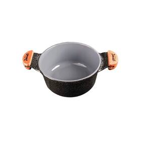 Especificações Técnicas 16 a 24cm: Revestimento Externo: Alumínio Fundido Preto Liso. Revestimento Interno: Antiaderente em Cerâmica cor Cinza. Alça Madeira Tampa de Vidro.