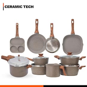 Distribuído por feheros shop Jogo de panelas 10 peças premium 4mm indução revestimento cerâmico antiaderente Atenção As panelas com revestimento cerâmico possuem propriedades antiaderentes que ajudam a evitar que os alimentos grudem, mas não são 100% antiaderentes e podem exigir pequena quantidade de óleo para melhor desempenho. - produto certificado pelo inmetro nível a . - evite que a chama do fogão atinja as laterais da panela. - não deixe o produto superaquecer vazio. Informações do produto O jogo de panelas 10 peças é pensado para quem cozinha diariamente e busca praticidade, reunindo corpo em alumínio de 4 mm e revestimento cerâmico antiaderente que evita que os alimentos grudem, facilita a limpeza e permite usar menos óleo. Compatível com fogões a gás, elétricos, vitrocerâmicos e por indução, enquanto o fundo triplo de indução distribui o calor de forma uniforme e aquece rapidamente, reduzindo o tempo de preparo e economizando energia. Para completar, a panela 4,2 l possui fundo compatível com indução e sistema de segurança composto por regulador , válvula flutuante, duas válvulas adicionais, anel de vedação e tampa à prova de bloqueio, trazendo confiabilidade ao uso diário Especificações técnicas do produto - compatível com fogões a gás, elétricos, vitrocerâmicos e por indução, oferecendo versatilidade para diferentes cozinhas - revestimento cerâmico antiaderente livre de pfoa, que preserva o sabor dos alimentos e permite cozinhar com menos óleo - cabo de baquelite com revestimento soft touch macio, que não esquenta e garante conforto e segurança no manuseio - panela com sistema de segurança completo com regulador , duas válvulas de segurança adicionais, válvula flutuante, anel de vedação e tampa à prova de bloqueio Ficha técnica do produto - caçarola 18 cm 18 x 8,5 cm 1,7 l - caçarola 22 cm 22 x 10 cm 3,2 l - panela 16 cm 16 x 8,5 cm 1,3 l - panela 18 cm 18 x 8,5 cm 1,7 l - frigideira 16 cm 16 x 4 cm 0,6 l - frigideira 22 cm 22 x 4,7 cm - grill 24 cm 24 x 4 cm 1,5 l - leiteira 14 cm 14 x 12 cm 1,8 l - frigideira grill 3 em 1 18 x 18 cm - panela 4,2 l 20 - altura sem tampa 14,5 cm - comprimento total 41,5 cm Antes do primeiro uso - lave com esponja macia e detergente - seque bem - aplique fina camada de óleo na parte interna - leve ao fogo baixo por 2 minutos - deixe esfriar, lave novamente e seque - na panela , unte levemente a borda do corpo e o anel de vedação, coloque água até a metade, feche, aqueça até liberar vapor por 2 minutos, deixe esfriar, lave e seque Após o uso - aguarde esfriar antes de lavar - lave manualmente com água, sabão e esponja - para remover resíduos, deixe de molho em água por alguns minutos - não use produtos ou esponjas abrasivas - não é indicado o uso em lava-louças, para preservar o revestimento cerâmico Itens inclusos no pacote - 01 caçarola 18 cm revestimento cerâmico 1,7 l com tampa - 01 caçarola 22 cm revestimento cerâmico 3,2 l com tampa - 01 panela 16 cm revestimento cerâmico 1,3 l com tampa - 01 panela 18 cm revestimento cerâmico 1,7 l com tampa - 01 frigideira 16 cm revestimento cerâmico 0,6 l - 01 frigideira 22 cm revestimento cerâmico 1,45 l - 01 grill 24 cm revestimento cerâmico 1,5 l - 01 leiteira 14 cm revestimento cerâmico 1,8 l - 01 panela 4,2 l revestimento cerâmico - 01 frigideira grill 3 em 1 revestimento cerâmico Todas as fotos são reais dos produtos. Qualquer dúvida, estamos à disposição Dúvidas frequentes 01 - os produtos são novos Possuem R: sim. São novos e contam com 3 meses de do fabricante. 03 - como faço para acompanhar o envio R: após a compra, você receberá um código de rastreamento para acompanhar todo o processo de entrega.