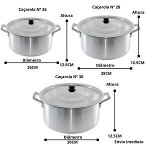 Jogo de Panelas 3 Caçasrolas Alumíno N 26 28 30 Kit 3 Industrial Hotel Restaurante Feijoada Tropeiro
