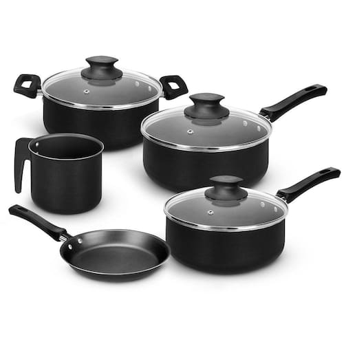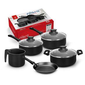 Revestimento interno: antiaderente Quantidade de peças: 5 Com tampas de vidro