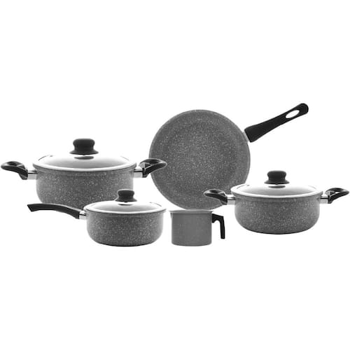 Jogo panelas 5 peças fogão indução antiaderente cerâmico Funcionais, duráveis e cheias de estilo, nossas panelas e frigideiras são pensadas para facilitar o seu dia a dia na cozinha. Com revestimentos antiaderentes, excelente condução de calor e design sofisticado, oferecem o equilíbrio ideal entre praticidade e beleza. Seja para preparar receitas simples ou pratos elaborados, e podendo ser Utilizado em qualquer fogão, além do de indução. Revestimento cerâmico antiaderente que permite cozinhar com menos gordura, garantindo uma alimentação mais saudável e uma limpeza prática após o uso. A tampa de vidro com saída de vapor oferece controle visual total durante o preparo, mantendo o sabor, a umidade e a temperatura dos alimentos. Características do produto Material: alumínio Cor: cinza granillite Medidas: frigideira 20cm x 4,5cm / leiteira 14cm x 12cm / panela 16cm x 7cm / caçarola 20cm x 9cm / caçarola 22cm x 10cm Marca: wolff Linha: gourmet Imagens ilustrativas e dimensões aproximadas, os demais produtos não acompanham o item. As cores podem variar de acordo com a tela do celular ou computador. Itens inclusos: 1 leiteira fervedor 1 frigideira 2 caçarolas 1 panela Limpeza e conservação Não usar abrasivos e produtos químicos como removedores de gordura, água sanitária, limpa vidros. Marca: Não Informado Ean: 7895730210835