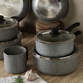 Jogo panelas 5 peças fogão indução antiaderente cerâmico Funcionais, duráveis e cheias de estilo, nossas panelas e frigideiras são pensadas para facilitar o seu dia a dia na cozinha. Com revestimentos antiaderentes, excelente condução de calor e design sofisticado, oferecem o equilíbrio ideal entre praticidade e beleza. Seja para preparar receitas simples ou pratos elaborados, e podendo ser Utilizado em qualquer fogão, além do de indução. Revestimento cerâmico antiaderente que permite cozinhar com menos gordura, garantindo uma alimentação mais saudável e uma limpeza prática após o uso. A tampa de vidro com saída de vapor oferece controle visual total durante o preparo, mantendo o sabor, a umidade e a temperatura dos alimentos. Características do produto Material: alumínio Cor: cinza granillite Medidas: frigideira 20cm x 4,5cm / leiteira 14cm x 12cm / panela 16cm x 7cm / caçarola 20cm x 9cm / caçarola 22cm x 10cm Marca: wolff Linha: gourmet Imagens ilustrativas e dimensões aproximadas, os demais produtos não acompanham o item. As cores podem variar de acordo com a tela do celular ou computador. Itens inclusos: 1 leiteira fervedor 1 frigideira 2 caçarolas 1 panela Limpeza e conservação Não usar abrasivos e produtos químicos como removedores de gordura, água sanitária, limpa vidros. Marca: Não Informado