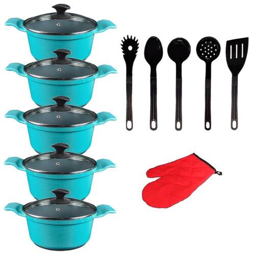 Jogo Panelas Azul Cerâmica Talher Preto Javali AAL 16 A 24