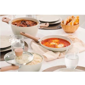 A primeira característica notável deste conjunto é o revestimento antiaderente de alta qualidade, que permite cozinhar de forma mais saudável, usando menos óleo e facilitando a limpeza após o uso.