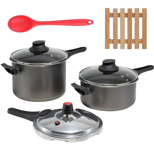 Jogo de Panelas 2 em 1 Fechamento Externo e Tampa de Vidro Marcolar A Panela Antiaderente com Fechamento Externo da Marcolar é a solução ideal para quem busca praticidade na cozinha, permitindo preparar refeições saborosas de maneira rápida e eficiente. Essa panela oferece conveniência incomparável. Com duas opções de tampas, você pode cozinhar com a tampa e, logo em seguida, trocar para a tampa de vidro e levar a panela diretamente à mesa. Economize tempo e reduza o número de louças a serem lavadas, sem abrir mão de um design sofisticado. Além disso, o fechamento externo proporciona maior segurança e facilidade no manuseio, enquanto as tampas de vidro temperado com saída de vapor asseguram um cozimento uniforme. DIFERENCIAIS - Fechamento Externo: Mais seguro e fácil de manusear, oferecendo um uso prático no dia a dia. - Revestimento Antiaderente: Evita que os alimentos grudem, facilitando tanto o preparo quanto a limpeza. - Tampas de Vidro: Duas tampas com saída de vapor para servir diretamente à mesa sem perder o calor dos alimentos. ESPECIFICAÇÕES TÉCNICAS Material: Alumínio Cor: Preto Compatibilidade: Ideal para fogões a gás ITENS INCLUSOS 01 Panela 4,5L 01 Panela 3L 02 Tampas de Vidro 02 Descansos de Panela 01 Colher de Silicone Leve a praticidade e qualidade Marcolar para sua cozinha e transforme suas refeições Marca: Não Informado Ean: 7894141427504