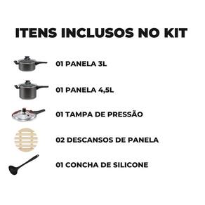 Jogo de Panelas 2 em 1 Fechamento Externo e Tampa de Vidro Marcolar A Panela Antiaderente com Fechamento Externo da Marcolar é a solução ideal para quem busca praticidade na cozinha, permitindo preparar refeições saborosas de maneira rápida e eficiente. Essa panela oferece conveniência incomparável. Com duas opções de tampas, você pode cozinhar com a tampa e, logo em seguida, trocar para a tampa de vidro e levar a panela diretamente à mesa. Economize tempo e reduza o número de louças a serem lavadas, sem abrir mão de um design sofisticado. Além disso, o fechamento externo proporciona maior segurança e facilidade no manuseio, enquanto as tampas de vidro temperado com saída de vapor asseguram um cozimento uniforme. DIFERENCIAIS - Fechamento Externo: Mais seguro e fácil de manusear, oferecendo um uso prático no dia a dia. - Revestimento Antiaderente: Evita que os alimentos grudem, facilitando tanto o preparo quanto a limpeza. - Tampas de Vidro: Duas tampas com saída de vapor para servir diretamente à mesa sem perder o calor dos alimentos. ESPECIFICAÇÕES TÉCNICAS Material: Alumínio Cor: Preto Compatibilidade: Ideal para fogões a gás ITENS INCLUSOS 01 Panela 4,5L 01 Panela 3L 02 Tampas de Vidro 02 Descansos de Panela 01 Concha de Silicone Leve a praticidade e qualidade Marcolar para sua cozinha e transforme suas refeições Marca: Não Informado