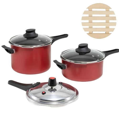 Jogo de Panelas 2 em 1 Fechamento Externo e Tampa de Vidro Marcolar A Panela Antiaderente com Fechamento Externo da Marcolar é a solução ideal para quem busca praticidade na cozinha, permitindo preparar refeições saborosas de maneira rápida e eficiente. Essa panela oferece conveniência incomparável. Com duas opções de tampas, você pode cozinhar com a tampa e, logo em seguida, trocar para a tampa de vidro e levar a panela diretamente à mesa. Economize tempo e reduza o número de louças a serem lavadas, sem abrir mão de um design sofisticado. Além disso, o fechamento externo proporciona maior segurança e facilidade no manuseio, enquanto as tampas de vidro temperado com saída de vapor asseguram um cozimento uniforme. DIFERENCIAIS - Fechamento Externo: Mais seguro e fácil de manusear, oferecendo um uso prático no dia a dia. - Revestimento Antiaderente: Evita que os alimentos grudem, facilitando tanto o preparo quanto a limpeza. - Tampas de Vidro: Duas tampas com saída de vapor para servir diretamente à mesa sem perder o calor dos alimentos. ESPECIFICAÇÕES TÉCNICAS Material: Alumínio Cor: Cereja Compatibilidade: Ideal para fogões a gás ITENS INCLUSOS 01 Panela 4,5L 01 Panela 3L 02 Tampas de Vidro 02 Descansos de Panela Leve a praticidade e qualidade Marcolar para sua cozinha e transforme suas refeições Marca: Não Informado